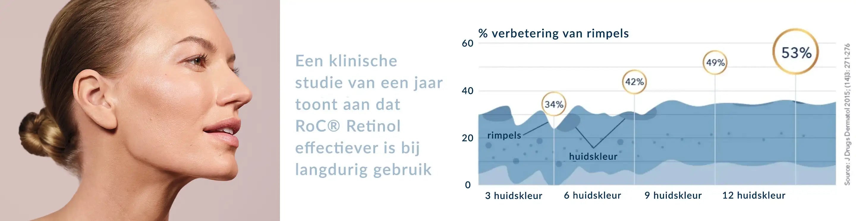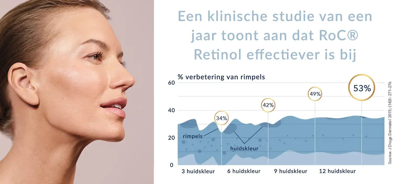 Van RoC®-producten is klinisch bewezen dat ze snel werken en in de loop van de tijd cumulatieve resultaten blijven opleveren. RoC is zelfs een van de weinige huidverzorgingsmerken die een eenjarig klinisch onderzoek hebben afgerond, waaruit blijkt dat de voordelen van RoC® Retinol-formules in de loop der tijd toenemen en niet afnemen. Jaar in, jaar uit worden RoC-formules door dermatologen aanbevolen en erkend door marktleiders.