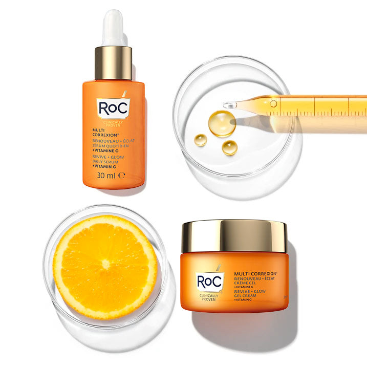De Revive + Glow-collectie van RoC is samengesteld met een 10% vitamine C-mengsel voor een glimmende, stralende, strakkere huid.